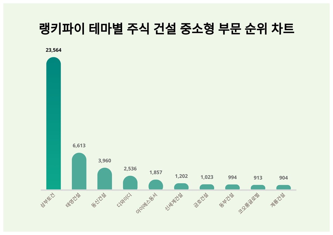 삼부토건·태영건설·동신건설, 4월 1주차 랭키파이 테마별 주식 건설 중소형 부문 트렌드지수 순위
