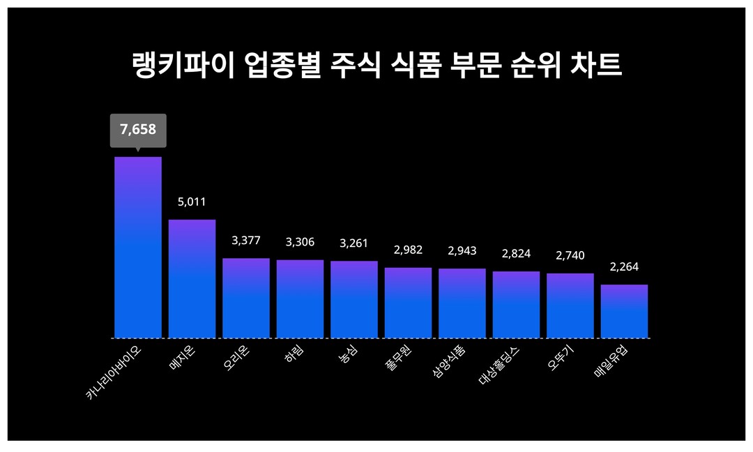 [출처: 랭키파이 업종별 주식 식품 부문 트렌드 테이블]