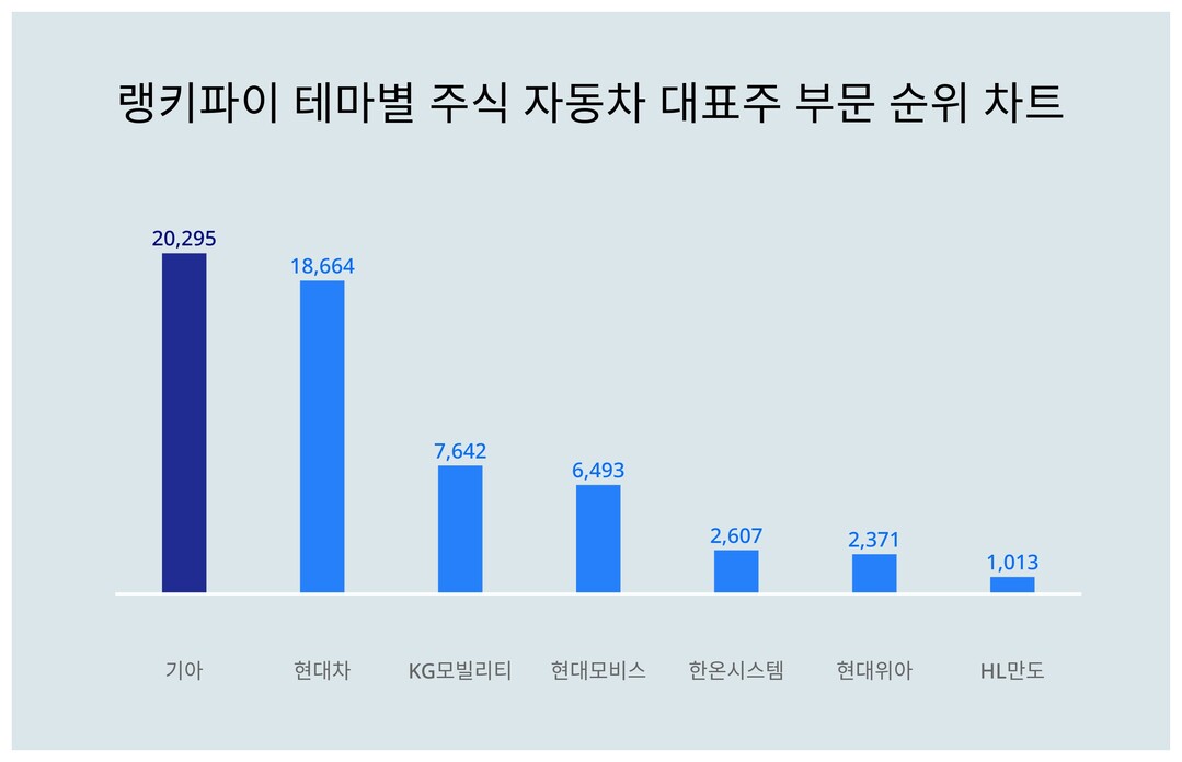 [출처: 랭키파이 테마별 주식 자동차 대표주 부문 트렌드 테이블]