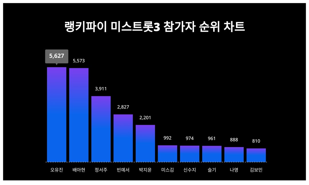 [출처: 랭키파이 미스트롯3 참가자 트렌드 지수 분석 결과]