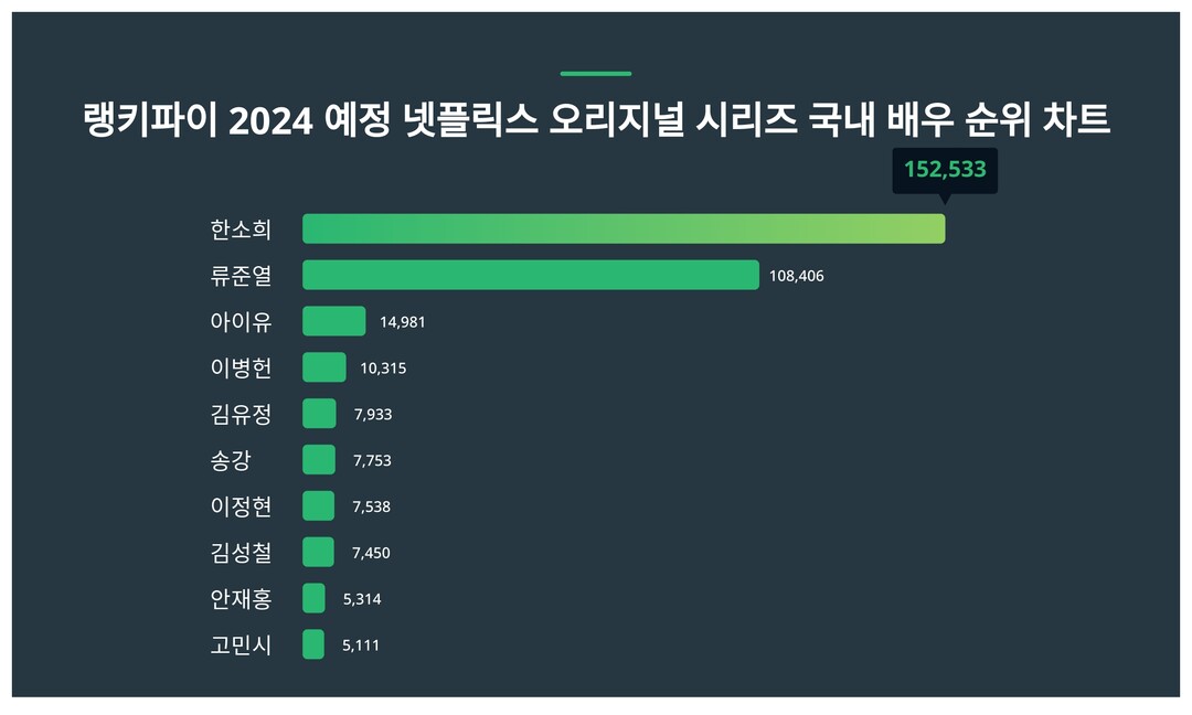 [출처: 랭키파이 2024 예정 넷플릭스 오리지널 시리즈 국내 배우 트렌드 지수 분석 결과]