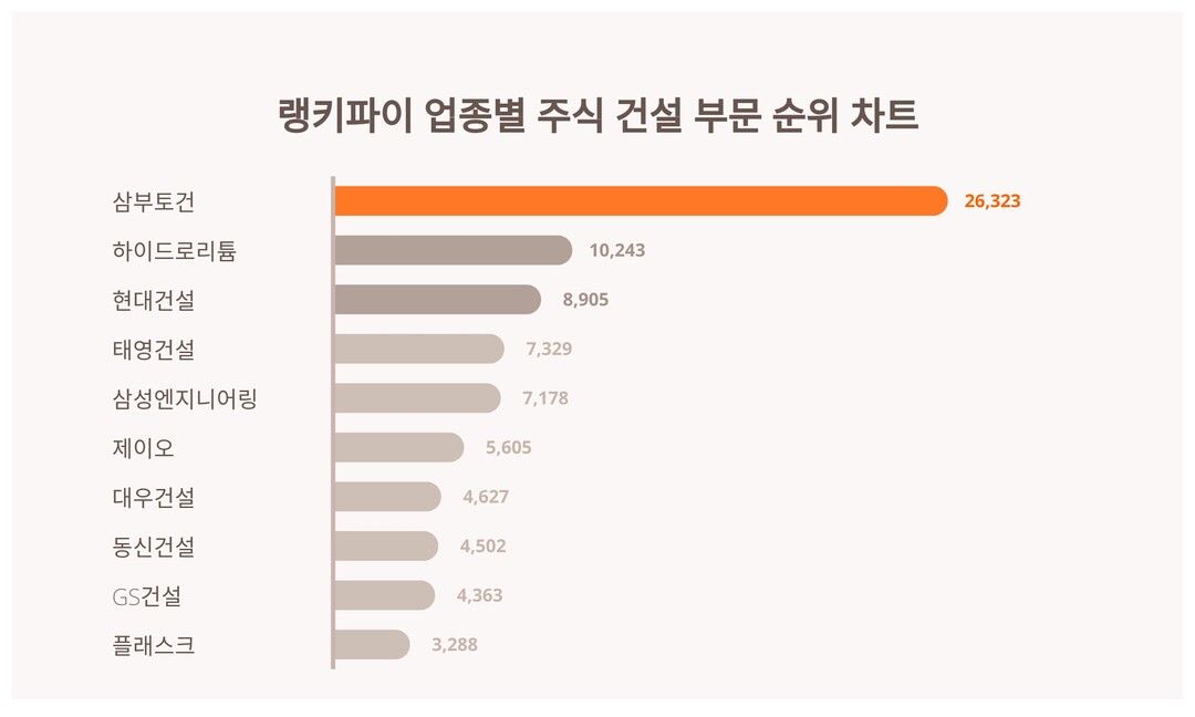 | 1 | 삼부토건 | 26,323 | 1% | 5% | 14% | 27% | 53% |