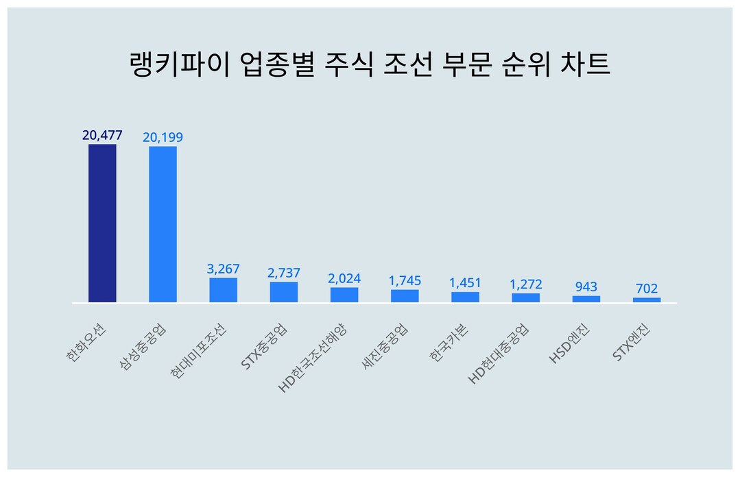 [출처: 랭키파이 업종별 주식 조선 부문 트렌드 테이블]