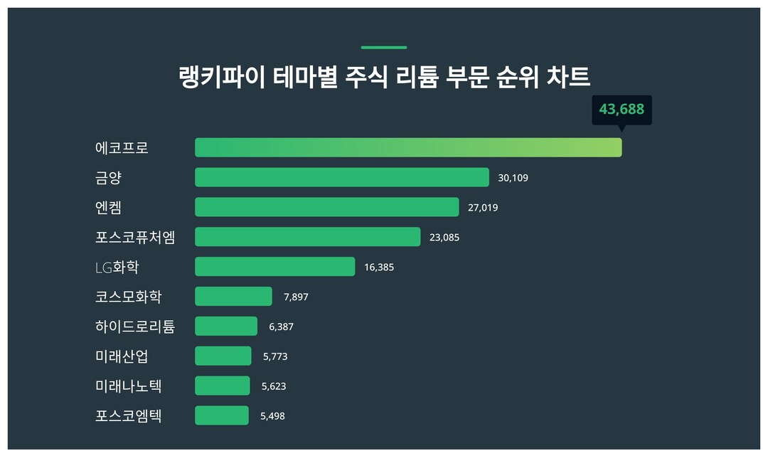 [출처: 랭키파이 테마별 주식 리튬 부문 트렌드 테이블]