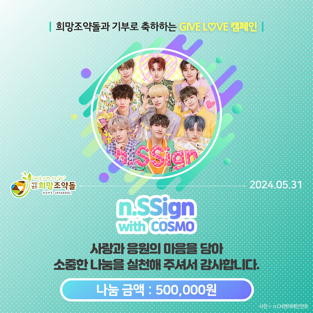 CWN(CHANGE WITH NEWS) - 엔싸인 팬덤 ‘COSMO’...학대 피해 아동 위해 기부