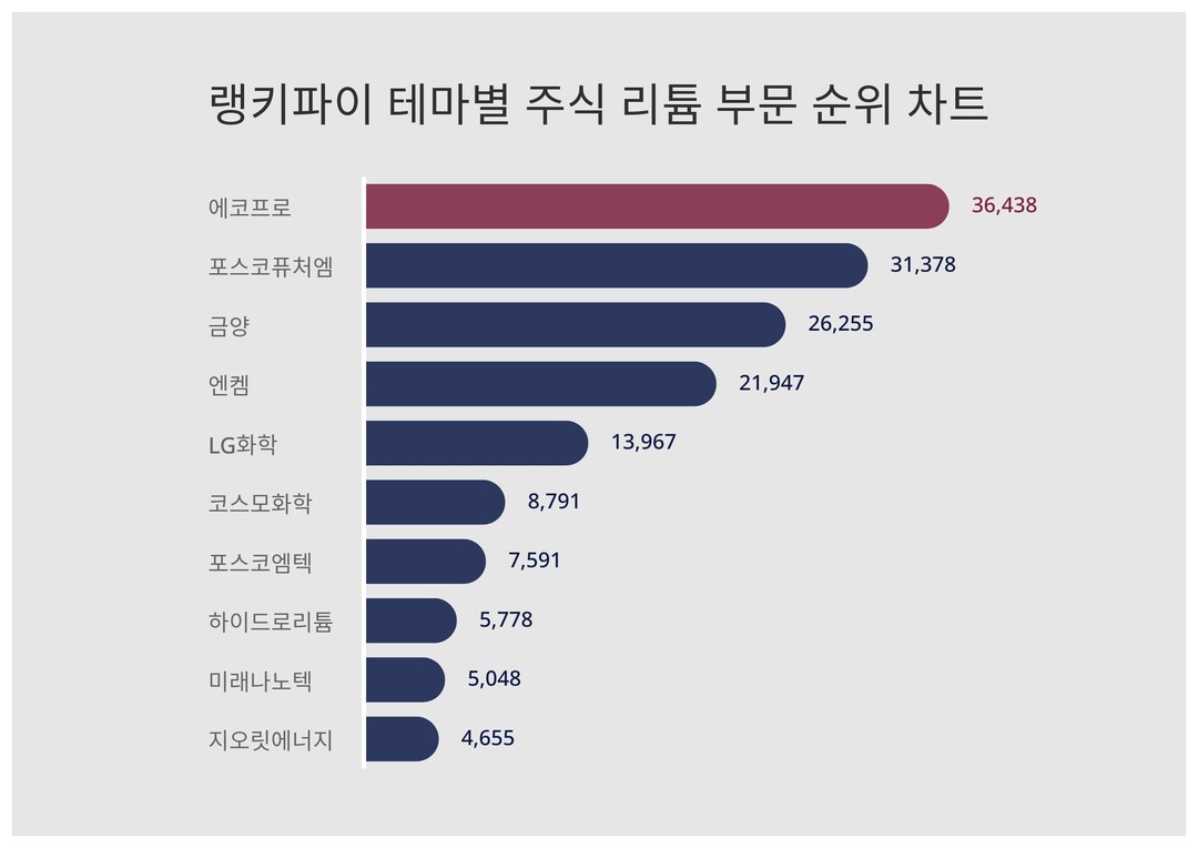 [출처: 랭키파이 테마별 주식 리튬 부문 트렌드 테이블]