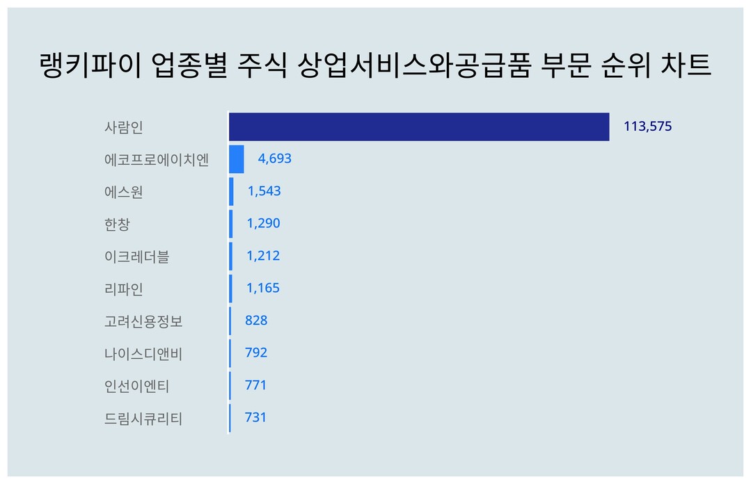[출처: 랭키파이 업종별 주식 상업서비스와공급품 부문 분석 결과]