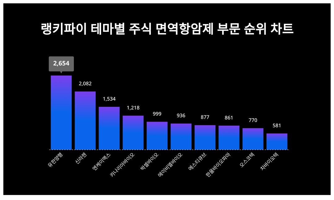 [출처: 랭키파이 테마별 주식 면역항암제 부문 트렌드 테이블]