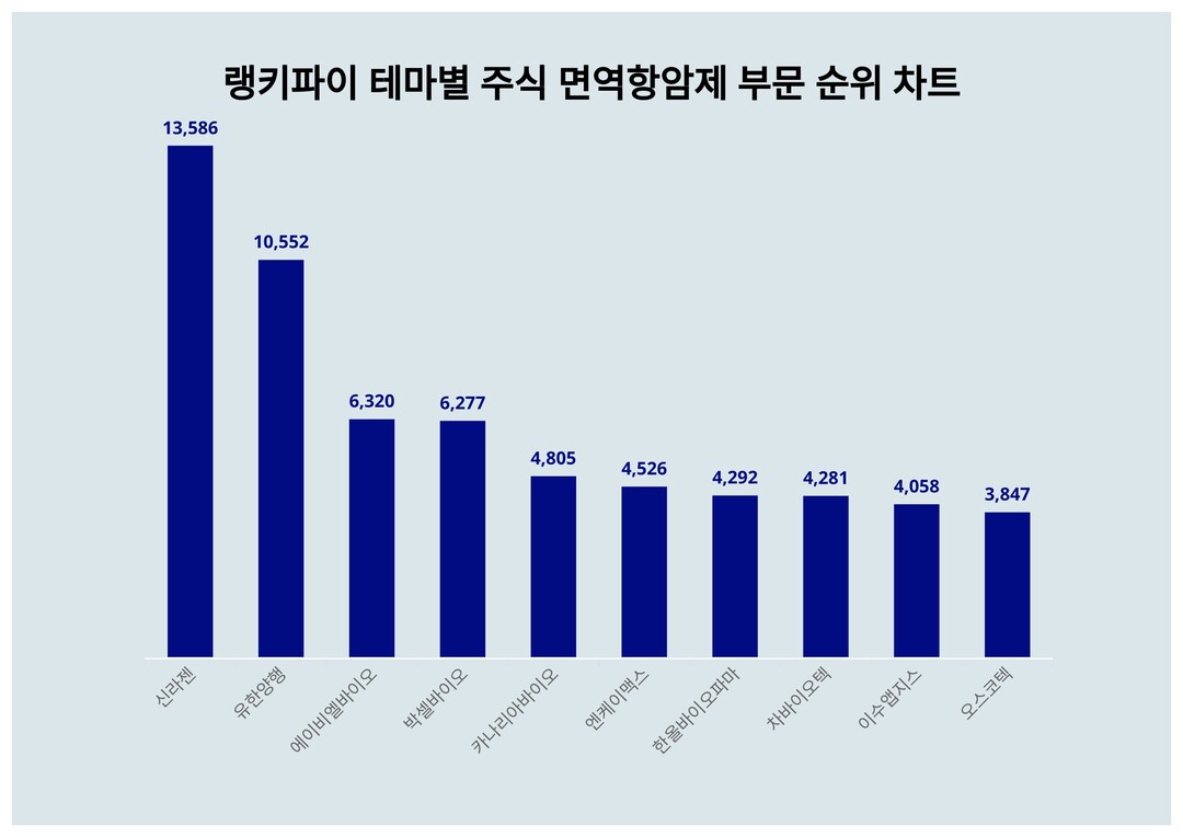 [출처: 랭키파이 테마별 주식 면역항암제 부문 트렌드 테이블]