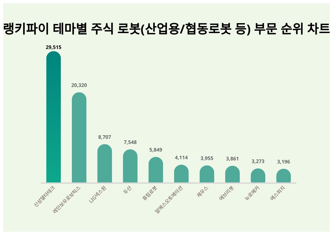 [출처: 랭키파이 테마별 주식 로봇(산업용/협동로봇 등) 부문 트렌드 테이블]
