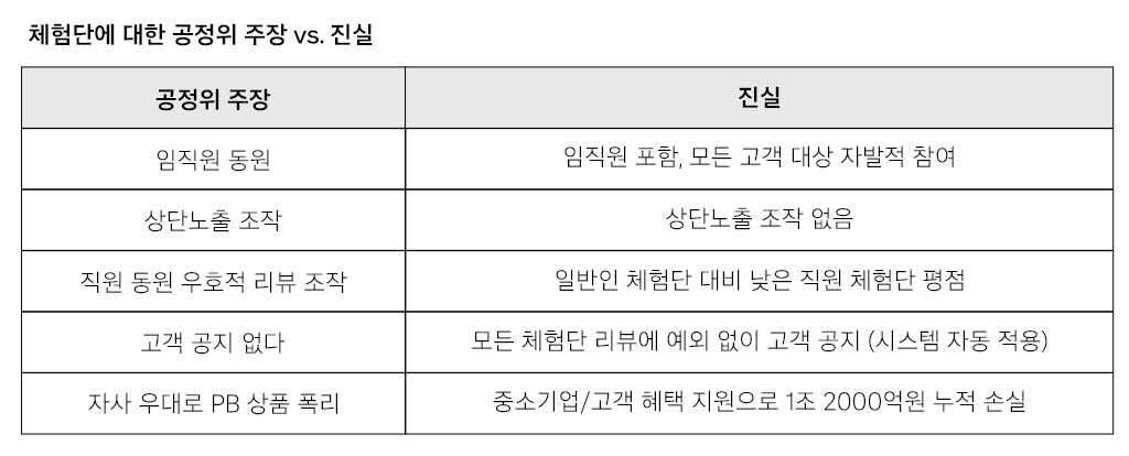 쿠팡은 “쿠팡 PB 제조사의 90%는 중소업체”라며 “대기업의 시장 장악으로 생존이 어려운 우수 중소기업의 PB 상품을 소개하고자 모든 고객과 임직원의 자발적 참여를 통해 공정하고 적법하게 쿠팡 체험단을 운영하고 있고 고객에게도 이를 분명하게 고지하고 있다”고 밝혔다.