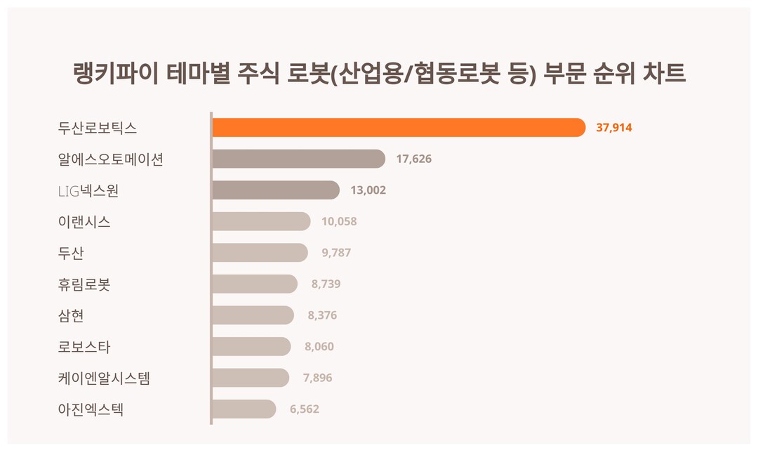 [출처: 랭키파이 테마별 주식 로봇(산업용/협동로봇 등) 부문 트렌드 테이블]