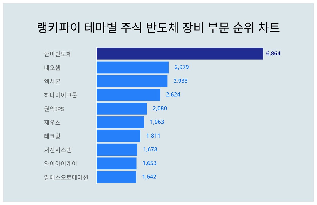 [출처: 랭키파이 테마별 주식 반도체 장비 부문 트렌드 테이블]