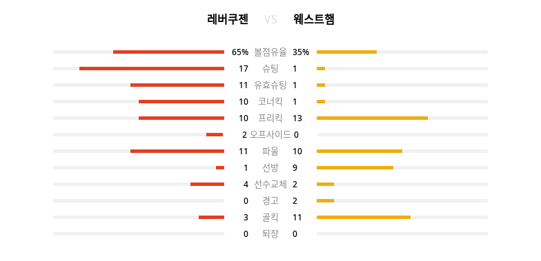 웨스트햄 득점 도움 슈팅 유효슈팅 패스 인터셉트 패스차단 태클 파울 걷어내기 경고 퇴장