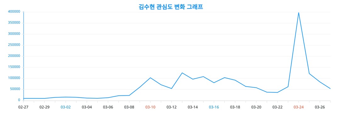 이 차트는 김수현의 시간에 따른 인기 변동성을 직관적으로 이해할 수 있는 지표이다.