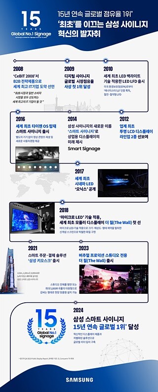 ▲15년 연속 글로벌 점유율 1위 '최초'를 이끄는 삼성 사이니지 혁신의 발자취. 사진=삼성전자