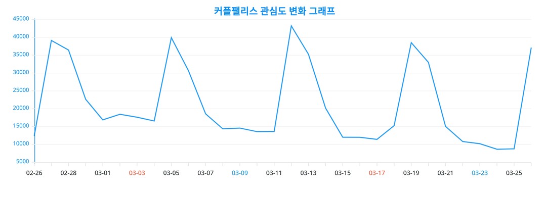 이 차트는 커플팰리스의 시간에 따른 인기 변동성을 직관적으로 이해할 수 있는 지표이다.