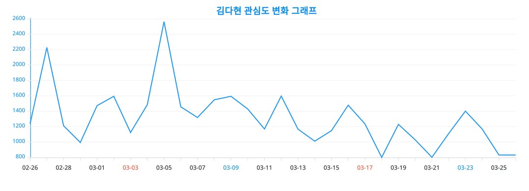 이번 분석을 통해 얻어진 김다현에 대한 일간 변화 추이 차트는, 김다현에 대한 관심이 어떻게 변화했는지를 생생하게 드러낸다.