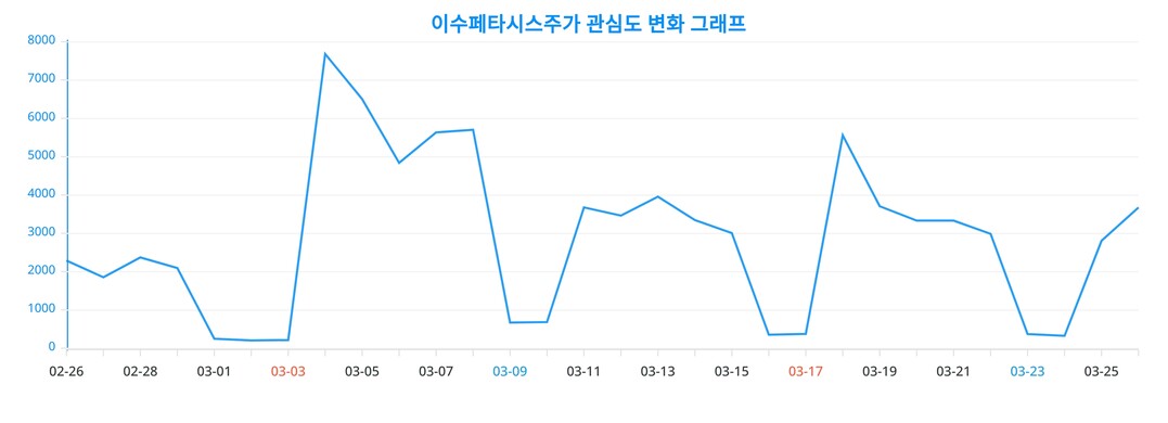랭키파이의 분석은 빅데이터를 기반으로 진행되었으며, 이수페타시스주가에 대한 전반적인 사회적 관심과 선호도를 면밀히 파악했다.
