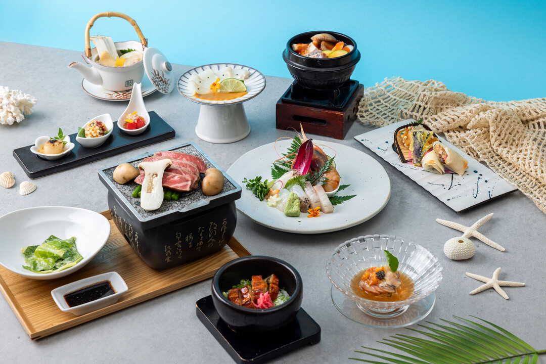 슈치쿠는 제철 생선을 활용한 일식 코스를 기획했다. 단백질 함량이 높아 여름 보양식으로 손꼽히는 △농어 아라이 △도화새우회 △성게 소바 △바닷장어 춘권 등 11개 메뉴가 제공된다. 아라이는 생선의 저민 살을 찬물로 씻는 조리 기법으로 꼬들꼬들한 식감을 자랑한다. 로메인 상추 샐러드와 함께 맛보는 등심 데리야키도 눈길을 끈다. 뜨거운 돌판에 굽는 이시야키 방식으로 요리해 육즙을 살렸다.