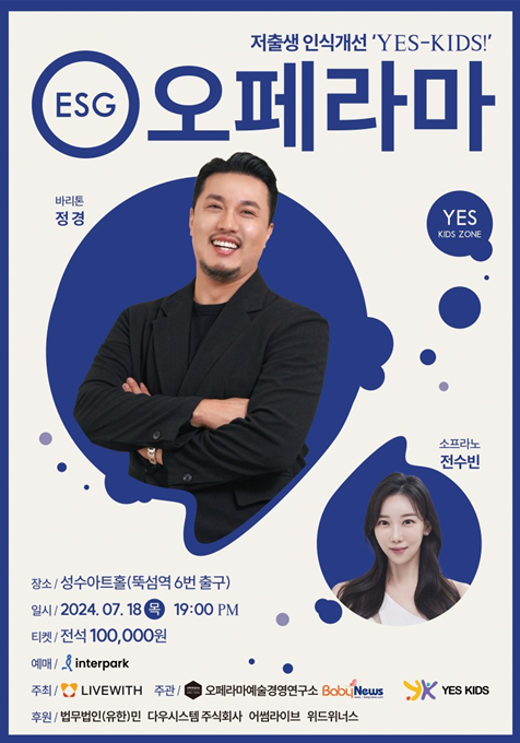 이번 공연은 기업의 ESG 경영 전환을 위한 종합 서비스를 제공하는 ESG 전문기업 ㈜리브위드가 주최하는 저출생 인식 개선 캠페인 ‘YES-KIDS’의 일환으로 개최된다.
