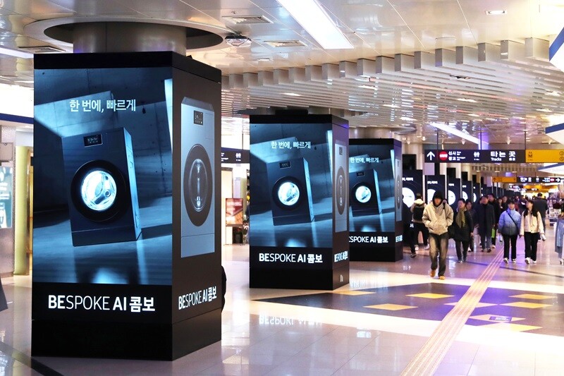 | ▲수도권 지하철 신분당선 강남역 역사에 삼성전자 '비스포크 AI 콤보' 디지털 옥외광고가 게재된 모습. 사진=삼성전자 |
