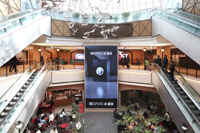 | ▲서울 여의도에 위치한 더현대 서울에 삼성전자 '비스포크 AI 콤보' 디지털 옥외광고가 게재된 모습. 사진=삼성전자 |