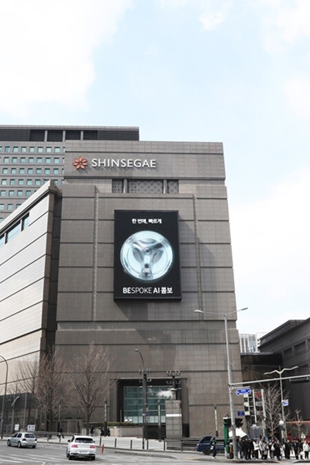 | ▲서울 소공로 위치한 신세계백화점 본점에 삼성전자 '비스포크 AI 콤보' 디지털 옥외광고가 게재된 모습. 사진=삼성전자 |