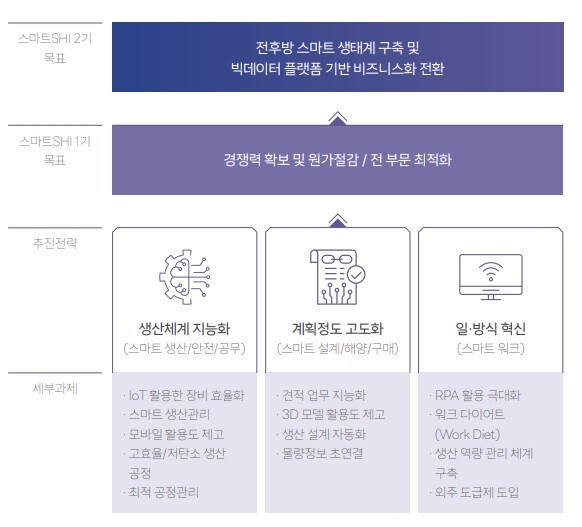 스마트SHI의 1기는 경쟁력 확보 및 원가 절감, 전 부문 최적화를 목표로 지난 2020년부터 3년간 진행됐다. 1기가 진행되는 동안 △생산체계 지능화 △계획정도 고도화 △일·방식 혁신 등을 3대 추진과제로 제시했다.