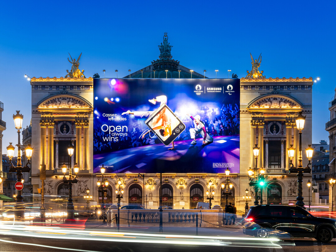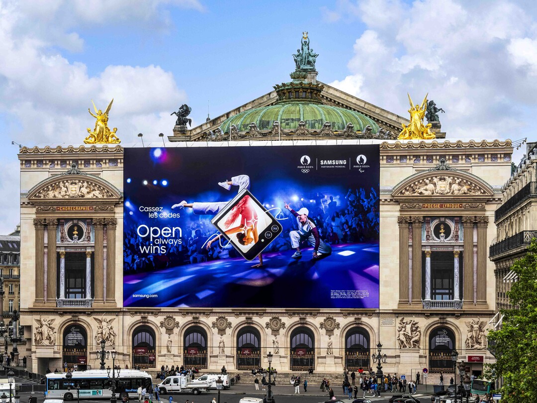 옥외광고는 삼성전자의 올림픽 메시지 'Open always wins(열린 마음은 언제나 승리한다)'를 담고 있다. 갤럭시 Z 플립5와 함께 2024 파리 올림픽의 신규 종목 '브레이킹'을 표현해 전 세계 올림픽 선수들과 팬들의 새로운 가능성을 응원한다.