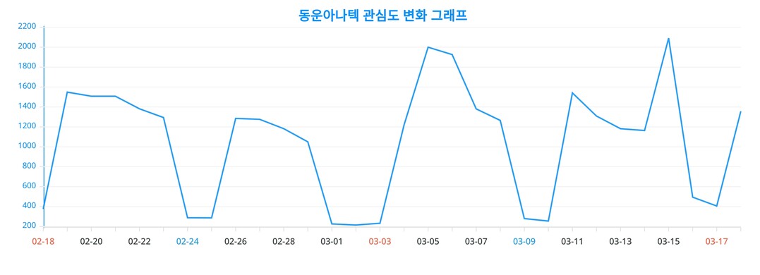 이 차트는 시간에 따른 동운아나텍의 인기 변동성을 직관적으로 나태내고 있다.