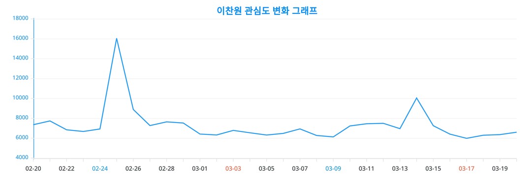 이번 분석을 통해 얻어진 이찬원에 대한 일간 변화 추이 차트는, 이찬원에 대한 관심이 어떻게 변화했는지를 생생하게 드러낸다.