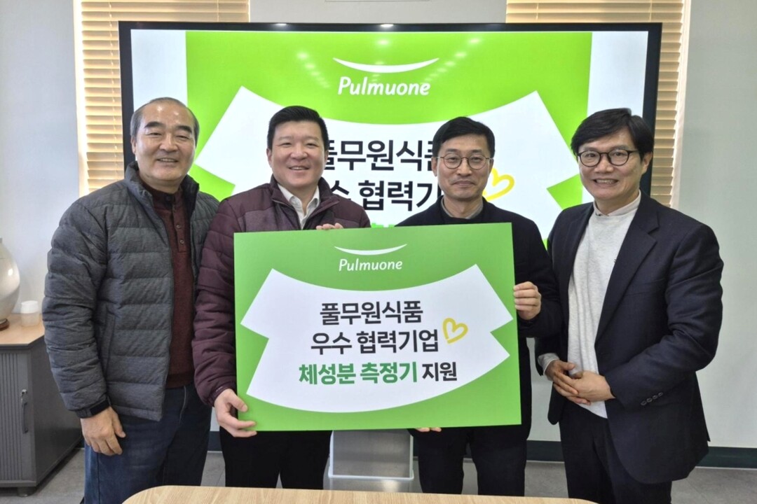 풀무원은 지난 22일 경기도 포천시 소재 우천식품에서 ‘우수 협력기업 체성분 측정기 지원’ 전달식을 열고, 우천식품을 포함한 최우수 핵심 협력기업 5개사에 기업별 270만 원 상당의 체성분 측정기(총 1,350만 원)를 전달했다. 우수 핵심 협력기업 15개사에는 기업별 200만 원 상당의 문화상품권(총 3,000만 원)을 향후 개별 기업 방문을 통해 제공할 예정이다.