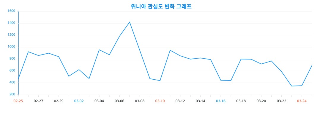 이 차트는 시간에 따른 위니아의 인기 변동성을 직관적으로 나타내고 있다.