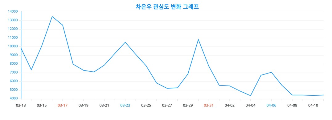 특히, 차은우에 대한 성별 관심도 조사 결과, 여성이 71%의 비율로 더 높은 관심을 보이는 것으로 나타나, 이 인기 키워드에 대한 성별 편차를 드러냈다.