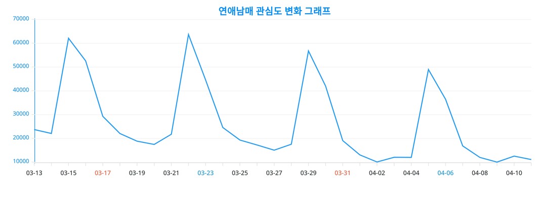 데이터 결과, 여러 연령대에서 '연애남매'에 대한 관심이 다양하게 나타나고 있음을 확인 할 수 있다.