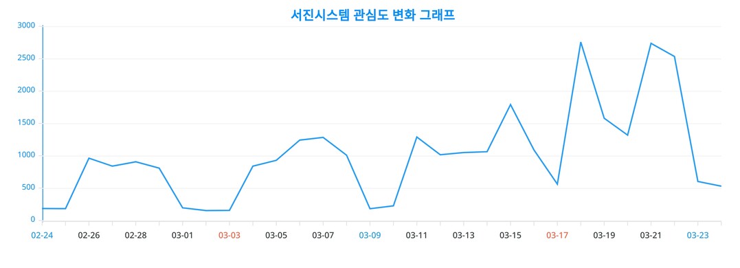 이 차트는 서진시스템의 시간에 따른 인기 변동성을 직관적으로 이해할 수 있는 지표이다.