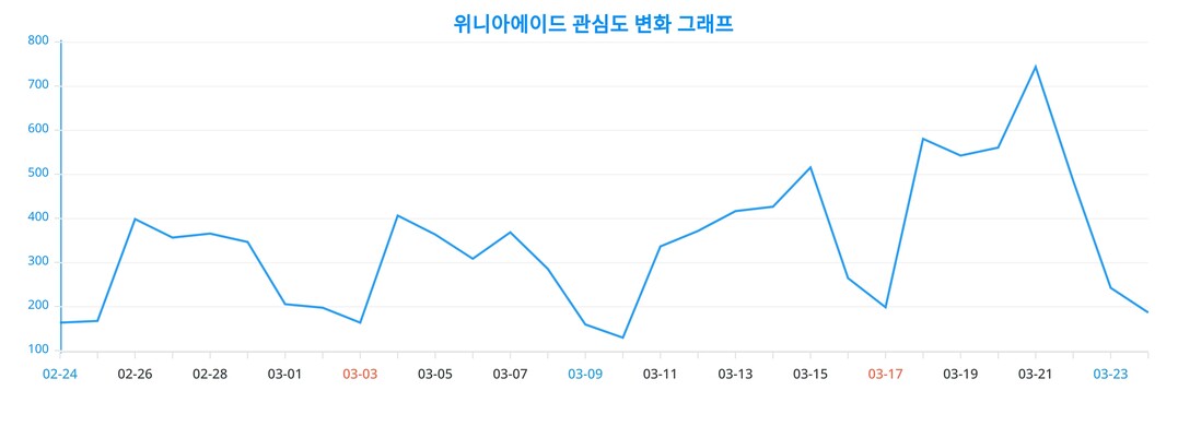 이번 분석을 통해 얻어진 위니아에이드에 대한 일간 변화 추이 차트는, 위니아에이드에 대한 관심이 어떻게 변화했는지를 생생하게 드러낸다.