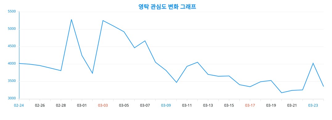 또한, 영탁에 대한 일간 변화 추이를 보여주는 차트는 영탁에 대한 관심이 어떻게 변화하고 있는지를 상세하게 보여준다.