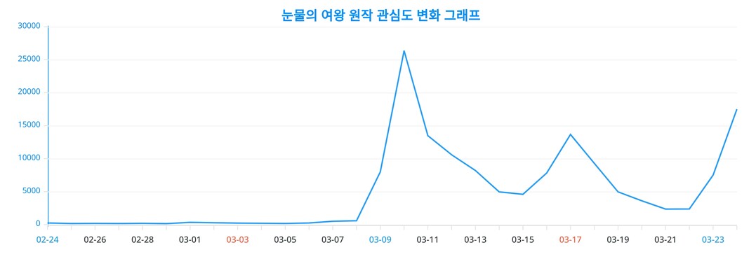 이 차트는 눈물의 여왕 원작의 시간에 따른 인기 변동성을 직관적으로 이해할 수 있는 지표이다.