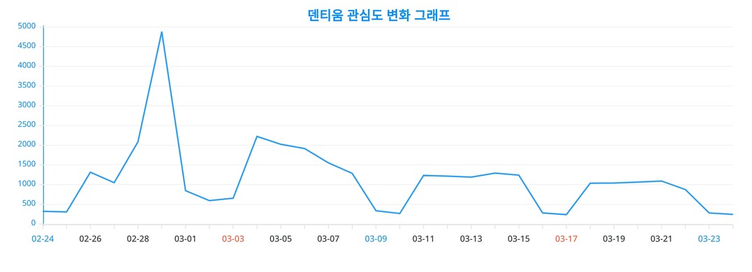 특히, 덴티움에 대한 성별 관심도 조사 결과, 남자가 71%의 비율로 더 높은 관심을 보이는 것으로 나타나, 이 인기 키워드에 대한 성별 편차를 드러냈다.