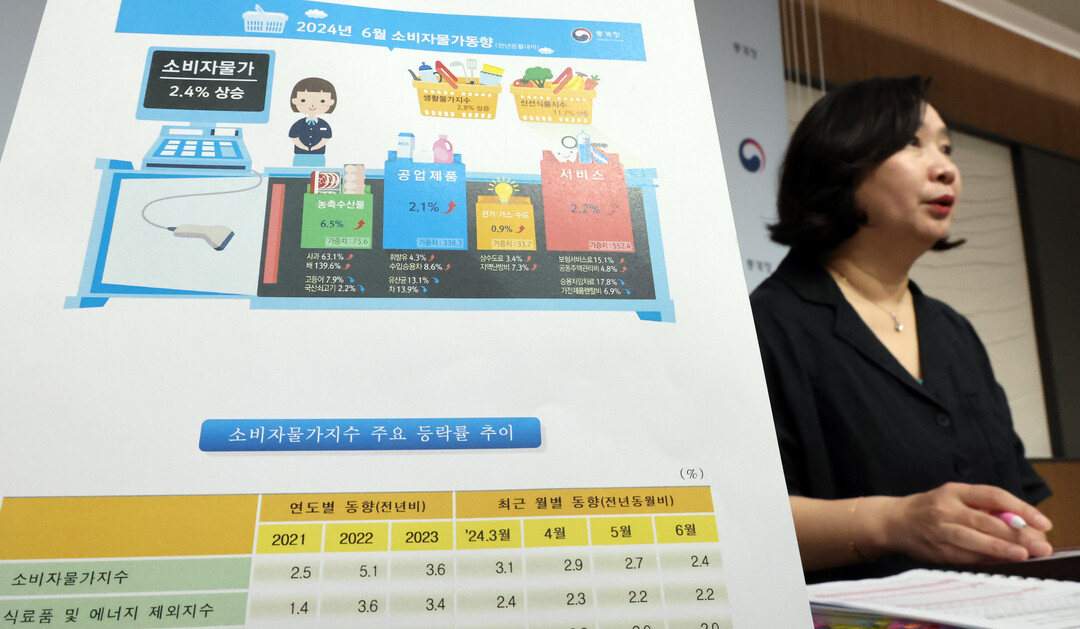 2일 통계청에 따르면 6월 지난달 소비자물가지수는 113.84(2020년=100)로 작년 같은 달보다 2.4% 올랐다. 지난해 7월 기록한 2.4% 이후 11개월 만에 가장 낮은 상승률이다.