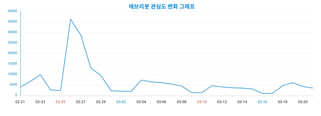 이번 분석을 통해 얻어진 에브리봇에 대한 일간 변화 추이 차트는, 에브리봇에 대한 관심이 어떻게 변화했는지를 생생하게 드러낸다.