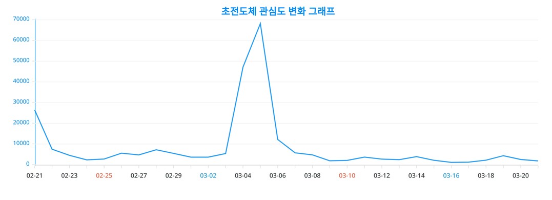 이 차트는 초전도체의 시간에 따른 인기 변동성을 직관적으로 이해할 수 있는 지표이다.