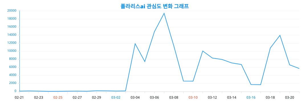 이 차트는 시간에 따른 폴라리스ai의 인기 변동성을 직관적으로 나태내고 있다.