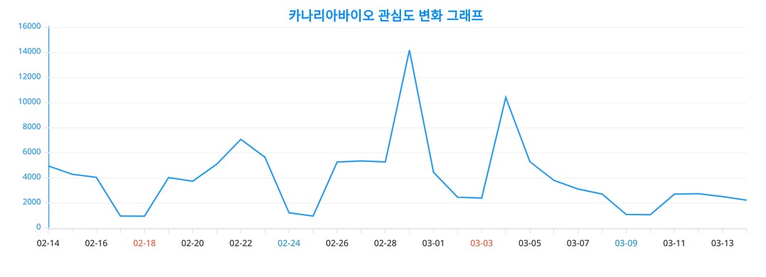 이번 분석을 통해 얻어진 카나리아바이오에 대한 일간 변화 추이 차트는, 카나리아바이오에 대한 관심이 어떻게 변화했는지를 생생하게 드러낸다.