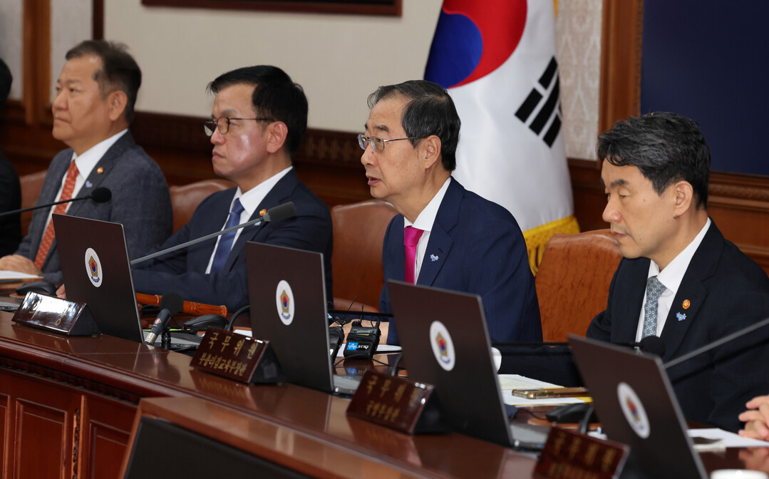 | ▲ 한덕수 국무총리가 21일 오전 서울 종로구 정부서울청사에서 열린 국무회의에서 채상병 특검법 거부권 관련 발언을 하고 있다. 사진=뉴시스 |