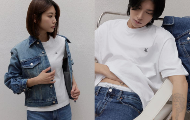화보에서는 새로운 시즌을 맞이하여 미니멀한 캘빈클라인의 로고 티셔츠와 데님을 활용한 커플룩 연출을 컨셉으로 했다.