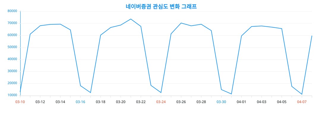 이번 분석을 통해 얻어진 네이버증권에 대한 일간 변화 추이 차트는, 네이버증권에 대한 관심이 어떻게 변화했는지를 생생하게 드러낸다.