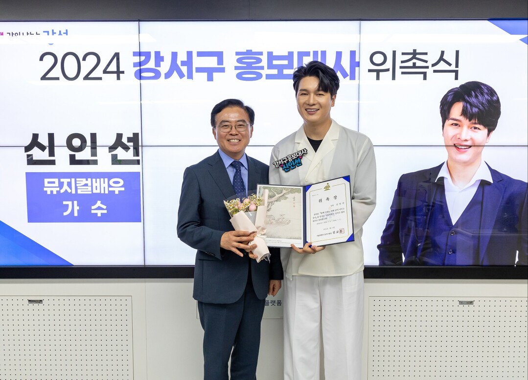 강서구(전교훈 구청장)는 지난 8일 오후 강서 구청장실에서 ‘홍보대사 위촉식’을 열고 신인선에게 위촉장을 전달했다.